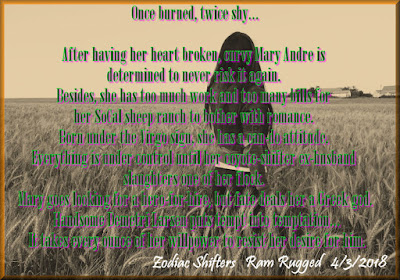 After having her heart broken, curvy Mary Andre is determined to never risk it again. Besides, she has too much work and too many bills for her SoCal sheep ranch to bother with romance. Born under the Virgo sign, she has a can-do attitude. Everything is under control until her coyote-shifter ex-husband slaughters one of her flock. Mary goes looking for a hero-for-hire, but fate deals her a Greek god. Handsome Demetri Larsen puts tempt into temptation… It takes every ounce of her willpower to resist her desire for him.